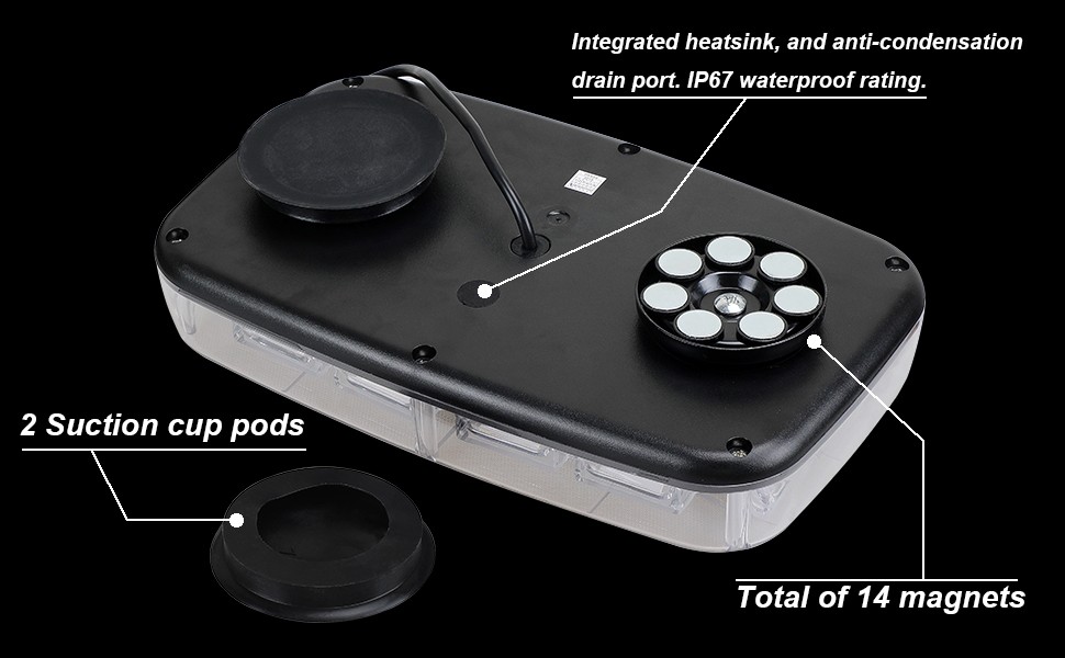 Emergency Safety Warning LED Mini Strobe Light bar with Magnetic Base for 12-24V Snow Plow, Trucks, Construction Vehicles (Amber/White)