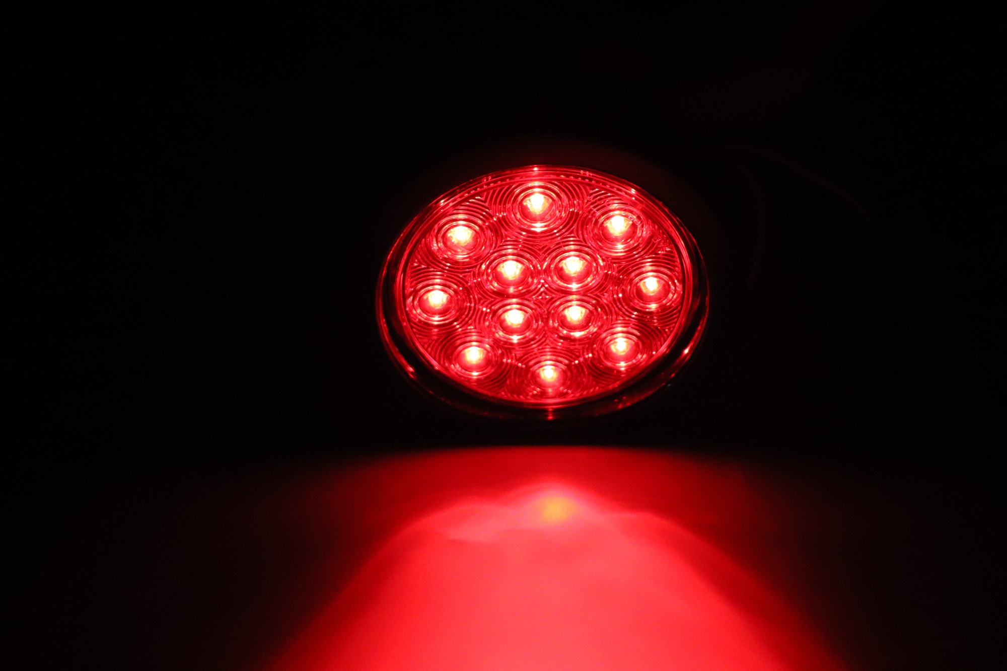 4” Round LED Tail Light Grommet Mount, STOP/TAIL/TURN Dark Red